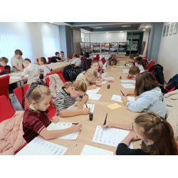 Opis: Zajęcia mają na celu zapoznanie z tematyką kaligrafii, czyli sztuką pisania, która odchodzi w zapomnienie. Uczestnicy warsztatów po wprowadzeniu w tematykę, będą mieli okazję samodzielnie zmierzyć się z kaligrafią i poćwiczyć pisanie przy pomocy stalówki i atramentu. Kolejnym zadaniem będzie próba odczytania dawnego pisma. Prelekcję wzbogacą interesujące materiały archiwalne z XVII-XVIII wieku, które zaprezentują prowadzący. Warsztaty zakończy ułożenie puzzli magnetycznych.