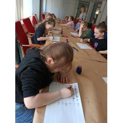Za nami kolejne warsztaty poświęcone historii pisma i narzędzi pisarskich. Tym razem gościliśmy uczniów klasy I ze Szkoły Podstawowej nr 2 w Olsztynie. W trakcie zajęć dzieciaki wcieliły się w rolę swoich rówieśników sprzed wielu, wielu lat. Miały okazję poćwiczyć technikę pięknego pisania przy użyciu pióra i atramentu. Nasi młodzi goście przekonali się na "własnej skórze", ile pracy w opanowanie sztuki kaligrafii musieli włożyć uczniowie w dawnej szkole. Nie zabrakło także opowieści o materiałach i narzędziach pisarskich oraz modzie, która dotyczyła również dawnego liternictwa. Dziękujemy za wizytę i zapraszamy ponownie!